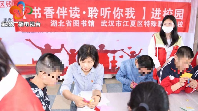 武职网讯(通讯员 李洁)武汉市江夏区特殊儿童学校的教室里,洋溢着欢声笑语。5月14日,在第31个全国助残日来临之际,湖北省图书馆联合武汉职业技术学院马克思主义学院红色经典读书会,走进江夏区特殊儿童学校,开展“非遗阅读温暖校园,红色精神滋养儿童”活动,与该校30多名智力障碍儿童一起阅读励志故事,共做非遗剪纸。