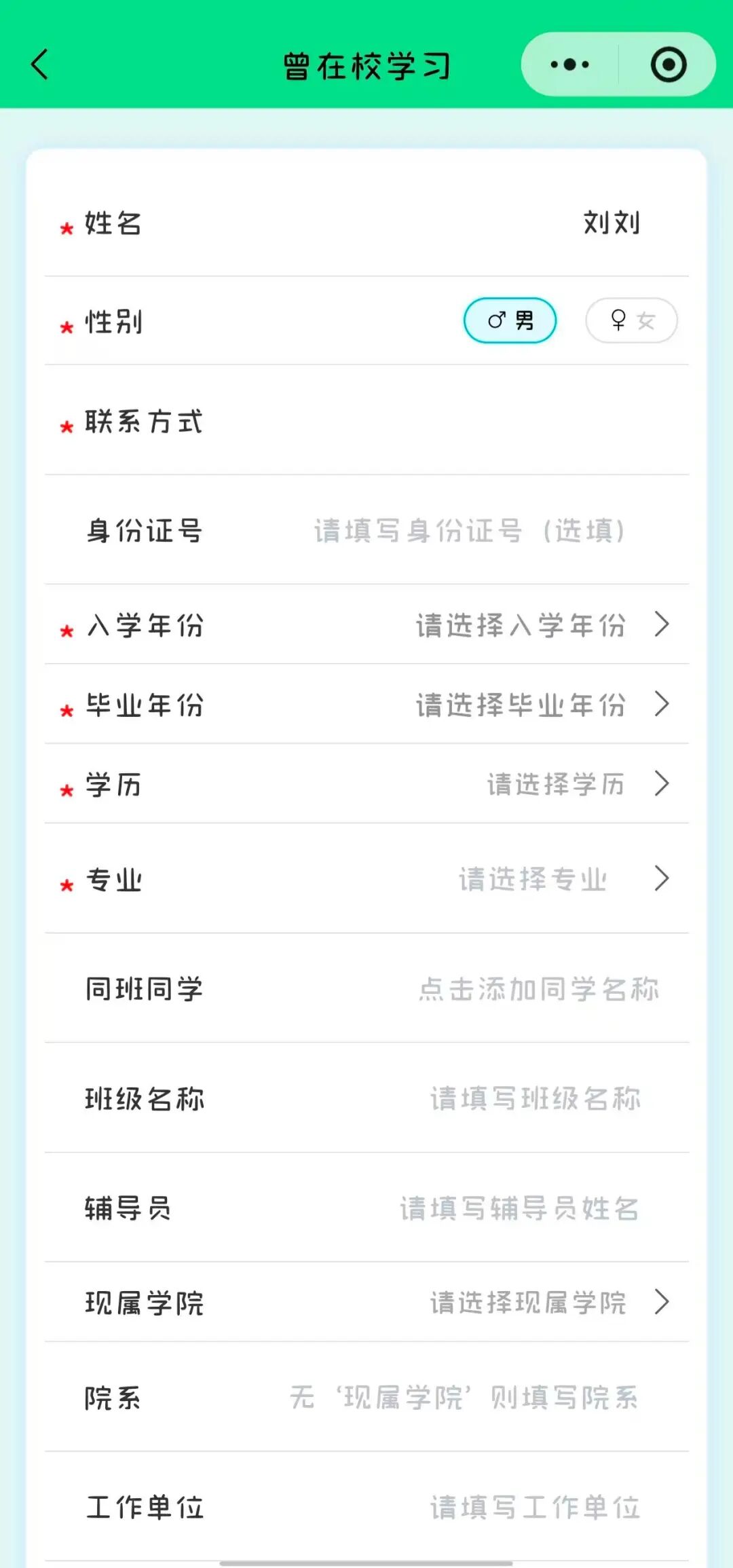 进入手动校友认证页,选择对应校友身份-填写相关信息进行认证(请按照提示填写真实信息⼀步步进行操作),提交认证等待审核。(请耐心等待审核,审核通过后微信中会收到服务通知)